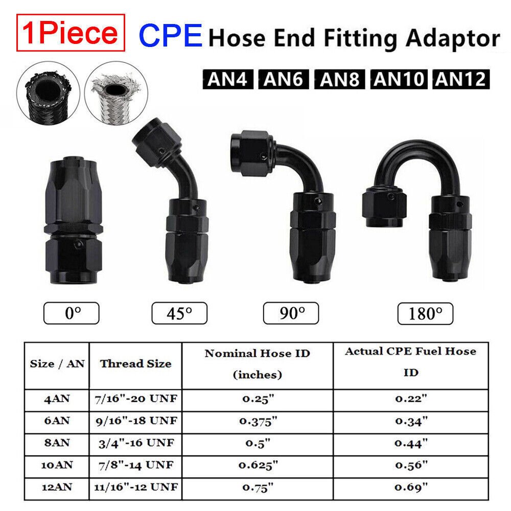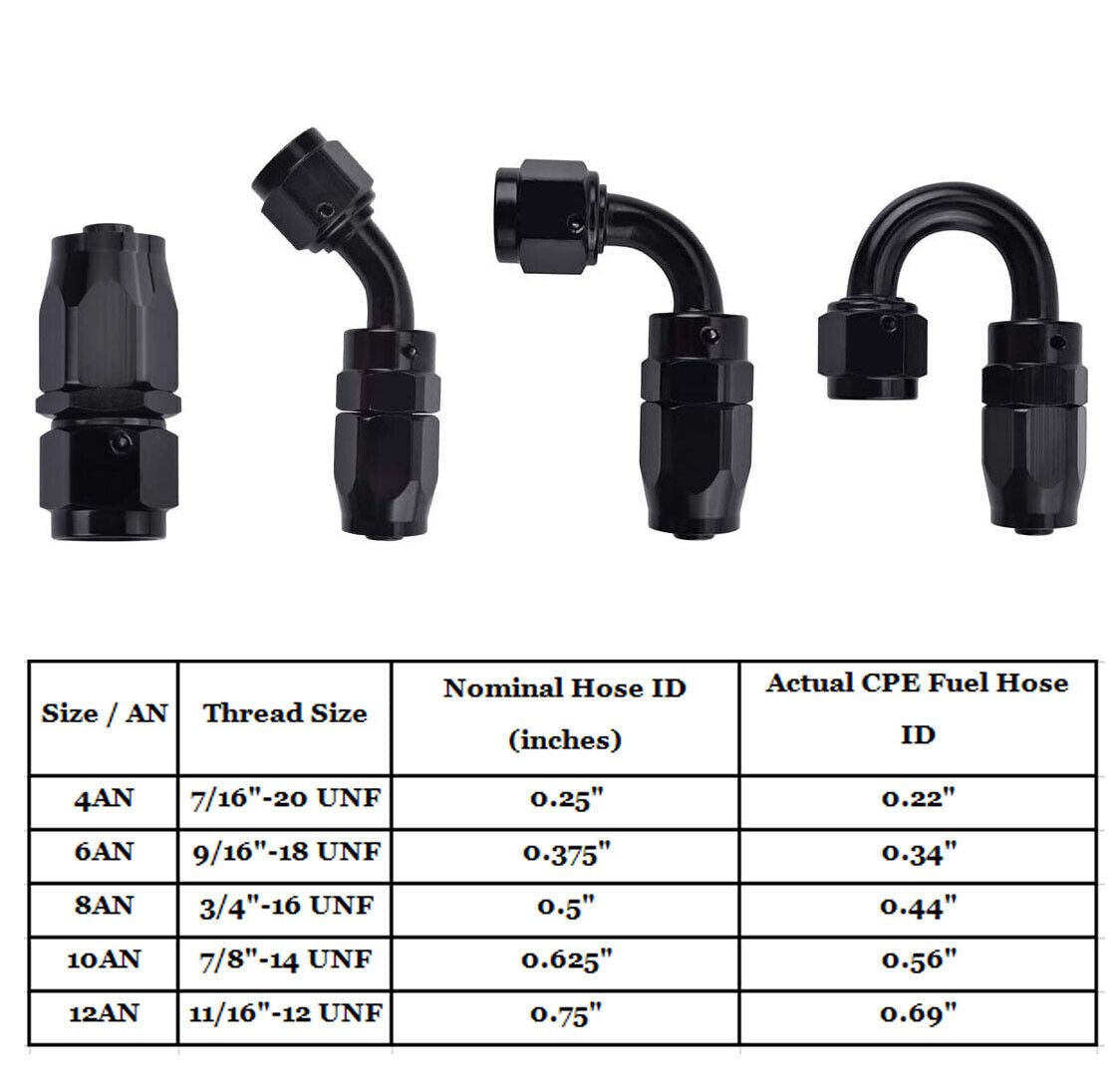 4AN/6AN/8AN/10AN/12AN swivel hose end is widely used in oil/ fuel/ water/ fluid/ airline etc. Connect oil gas line. braided fuel line. clutch hose. turbo line etc. Our swivel fitting is work with nylon braided fuel hose. They are not compatible with PTFE hose. E85. rubber hose.