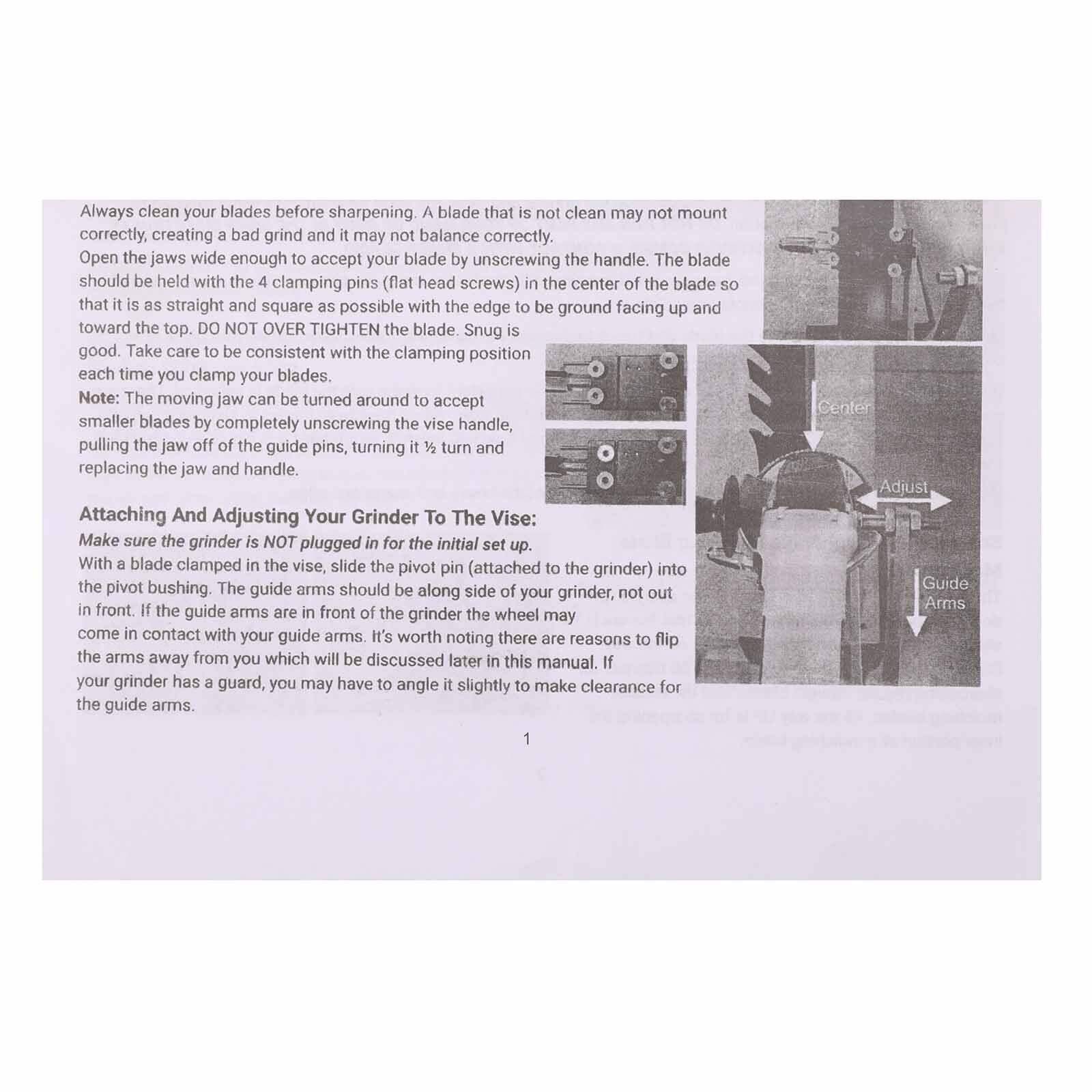 It features a vise head for secure blade holding. an articulating arm for precise grinding angles. and includes four adapter pins to easily attach a 4-1/2-inch angle grinder. ensuring a quick. consistent. and effortless sharpening experience.